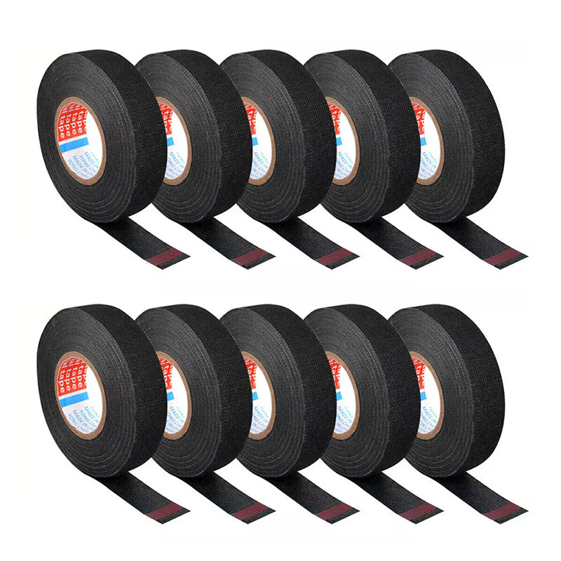 10 Rolls Wiring Loom Tape Harness Tape Adhesive Cloth Fabric 15m*18.5mm - Black.
