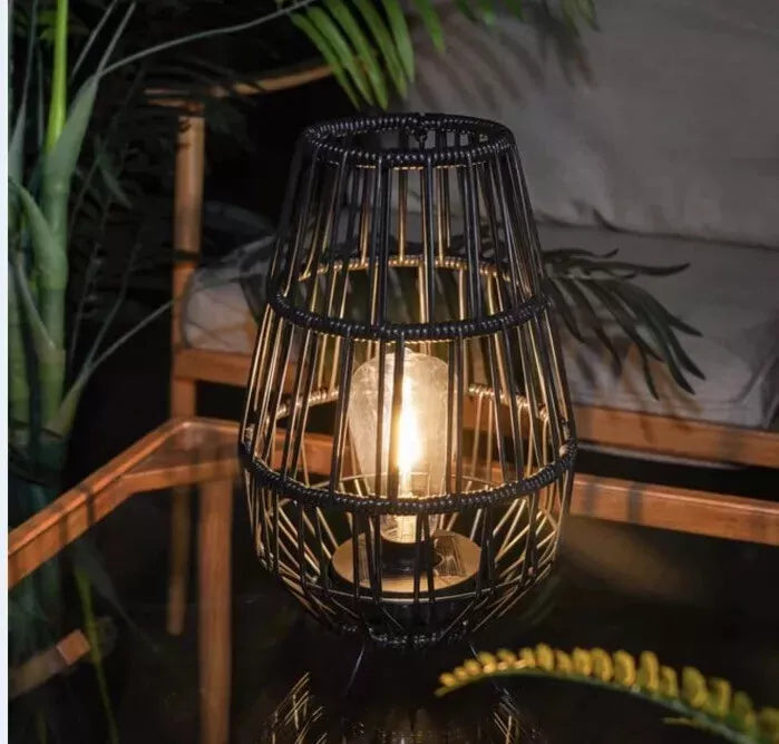 Black wire Table Lantern Solar Light – a stylish and eco-friendly lighting solution that seamlessly combines form and function. This elegant lantern is designed to enhance your outdoor or indoor spaces with its timeless aesthetic while harnessing the power of the sun to illuminate your surroundings.